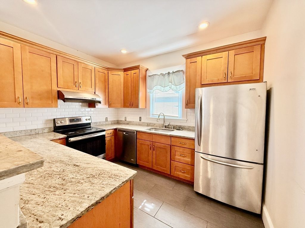 3 levels of living space with 4 bedrooms and 2 baths. The kitchen was updated with new stove, dish washer, tile floor for both kitchen and bathrooms. Hardwood floor in all rooms. The first floor future the kitchen, formal dining room, living room and a full bath. The second floor has 2 bedrooms and an addtional 2 more bedrooms on the third floor with a full bath. Convenient location close to the Quincy Center, Walmart, H mart and all the restaurants.